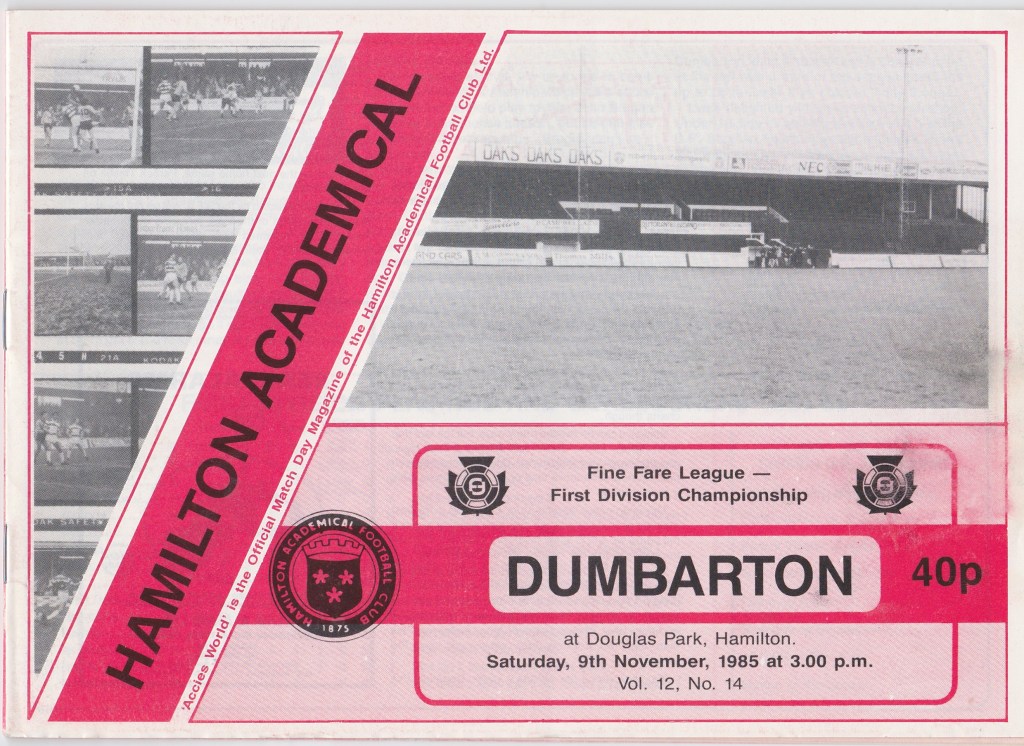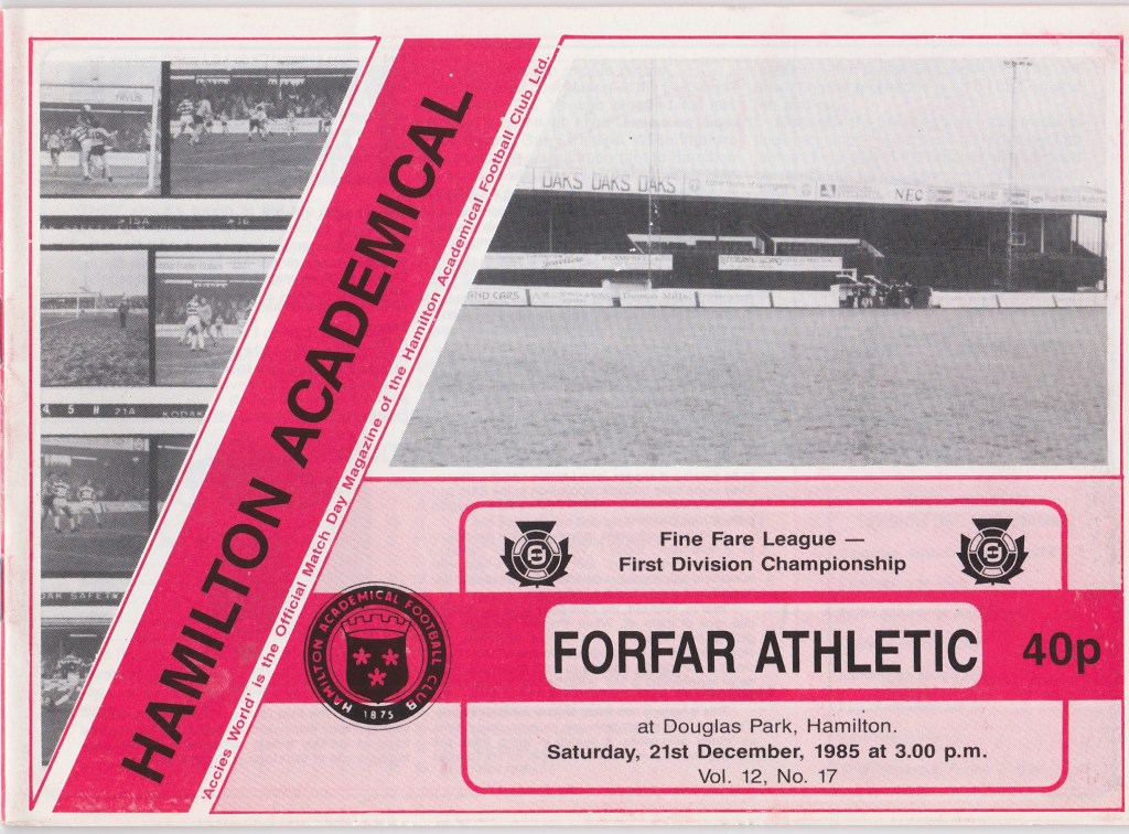 Accies then faced two home games against third placed Forfar and second placed Kilmarnock at Douglas Park before 1985 would end.