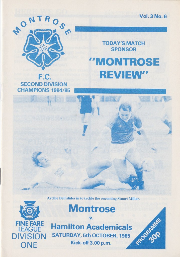 It was a game with 3,271 in attendance for Accies fans to savour as John Brogan’s early goal was added to by Tommy O’Neill’s wonderful free kick as they went 2-0 ahead inside the first half hour. Accies would go on to inflict Kilmarnock’s third consecutive 4-1 defeat and ensure Accies topped the table as 1985 ended.
