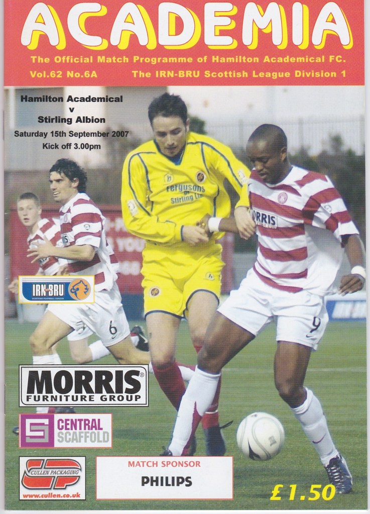 Accies returned from a week’s rest to face Stirling Albion at home. Captain Alex Neil’s 26th min free kick found it’s way into the net before Mark Gilhaney scored a spectacular second early in the second half. The winger then had a shot blocked but the rebound fell to teenager James McCarthy to net the third. Accies sealed a 4-0 win when Brian Wake scored with 5mins remaining.