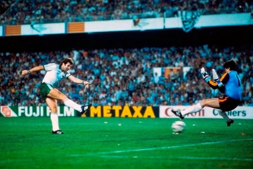 One of the great World Cup Finals shocks ,a s hosts Spain were beaten 1-0 by ten man N.Ireland. Gerry Armstrong scored the only goal of the game early in the second half before Mal Donaghy was red carded.
